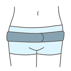 骨盤を締める位置に骨盤帯やサラシを巻く。