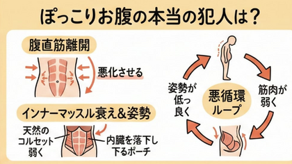 この負のループを断ち切ることが、ぽっこりお腹解消の鍵なのです。