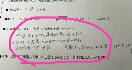 『呼吸法により、身体がかなり楽になるのを実感しました。出産に向けて、引き続き継続していきたいと思っております。』